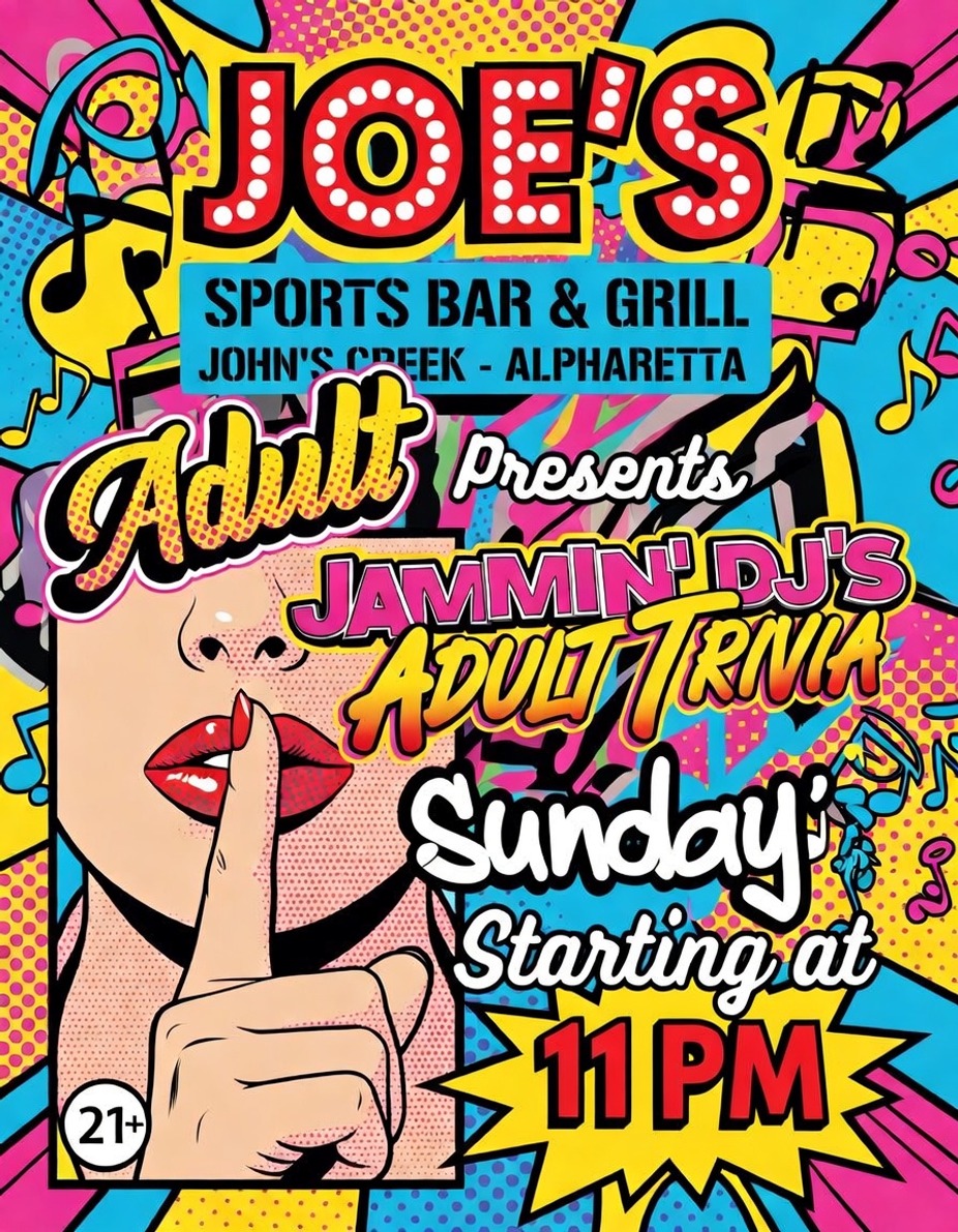 Sunday Night!!! Joe's and JamminDJs bring you My Jammin DJ Adult Trivia!!! 11pm start time and 21 and over!!! Free Play, Great Prizes and just a little on the "spicy" side!!! Join us stating at 11pm!!!